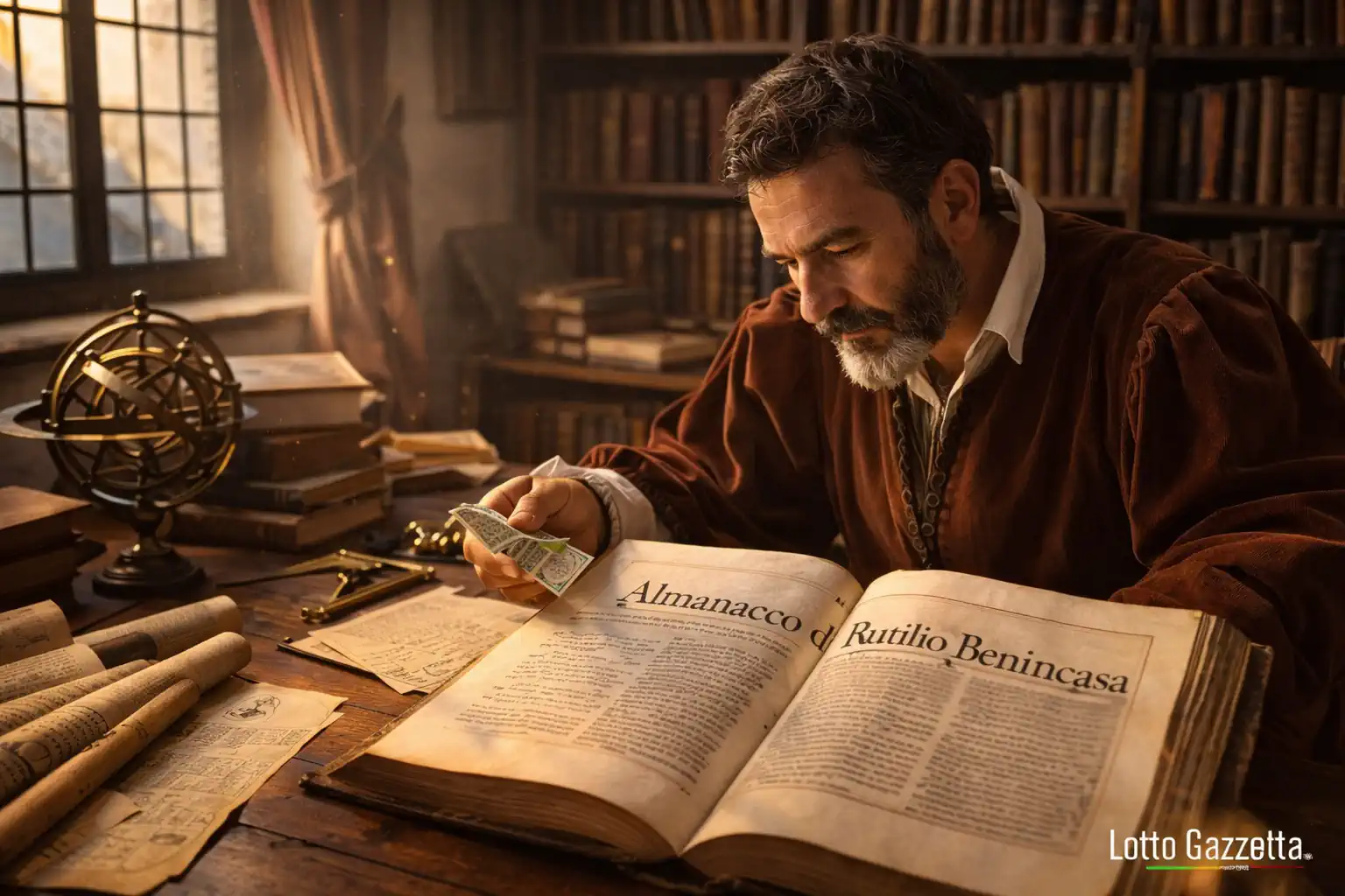 La sua opera più famosa, l’Almanacco Perpetuo, scritta nel 1587, è un mix di calcoli astronomici e previsioni. Ma ciò che ci interessa qui sono le sue 19 tavole numeriche, attribuitegli dalla tradizione popolare, che promettono di svelare numeri vincenti per il Lotto. Non ho prove che Rutilio giocasse davvero, ma il suo nome è diventato sinonimo di fortuna – e