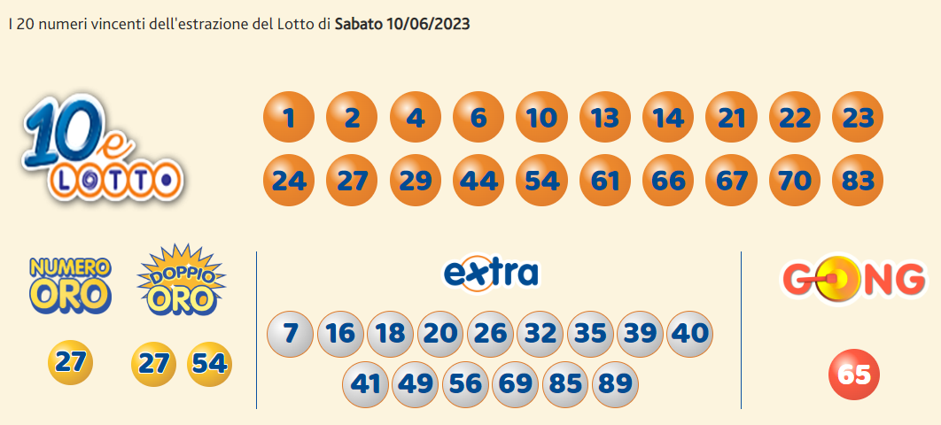 Lotto 10eLotto Superenalotto del 10/06/2023