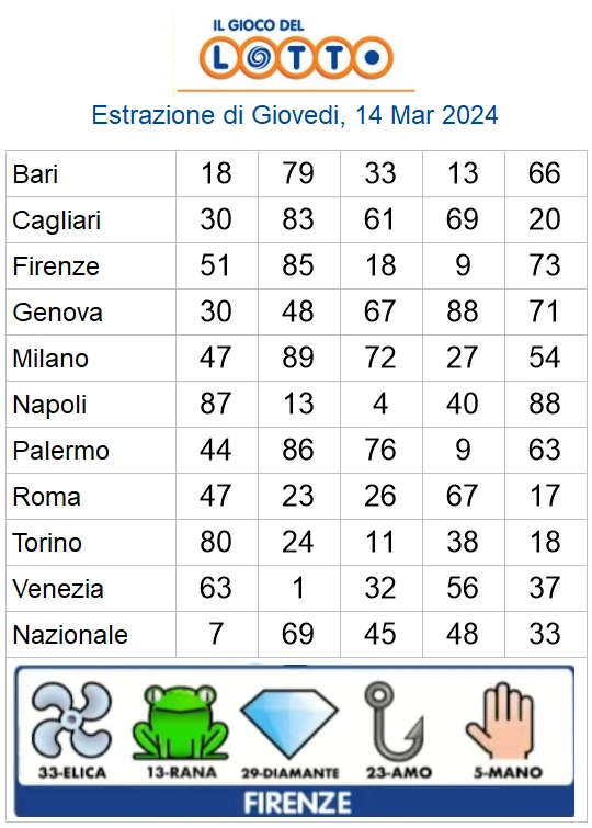 Lotto 10eLotto Superenalotto del 14/03/2024