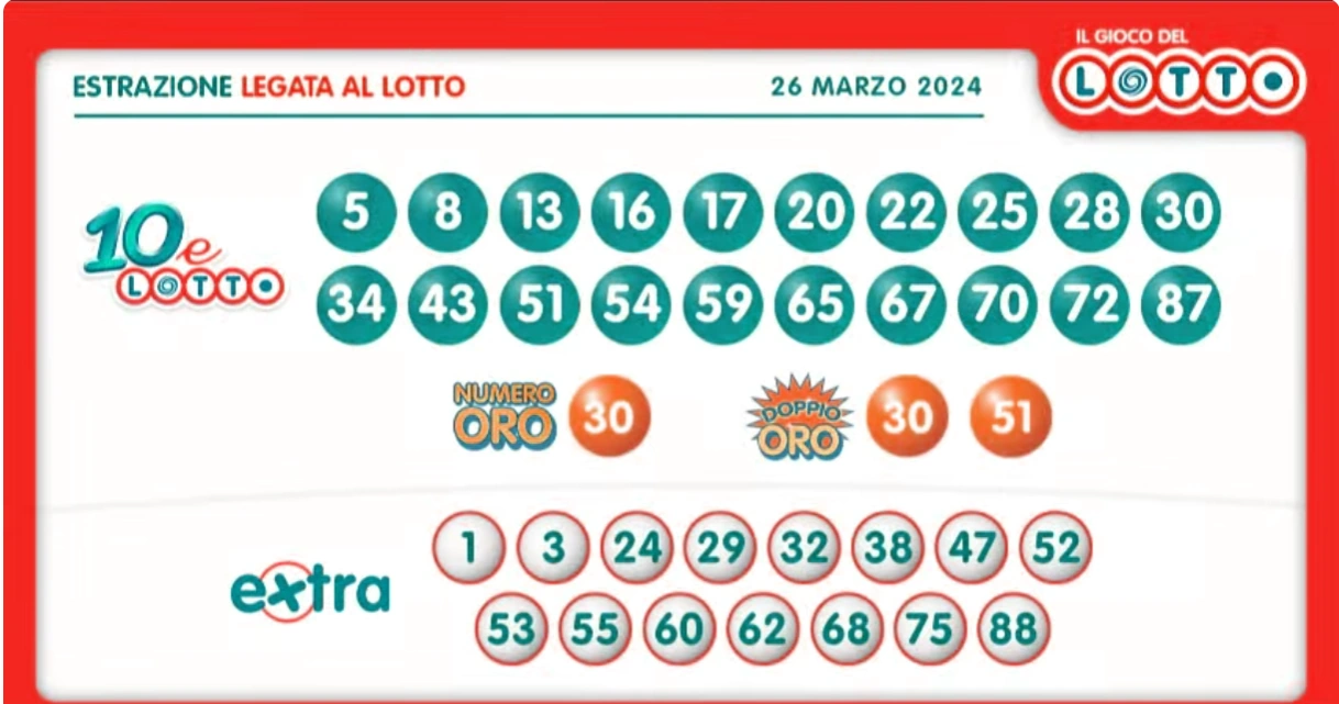 Lotto 10eLotto Superenalotto del 26/03/2024