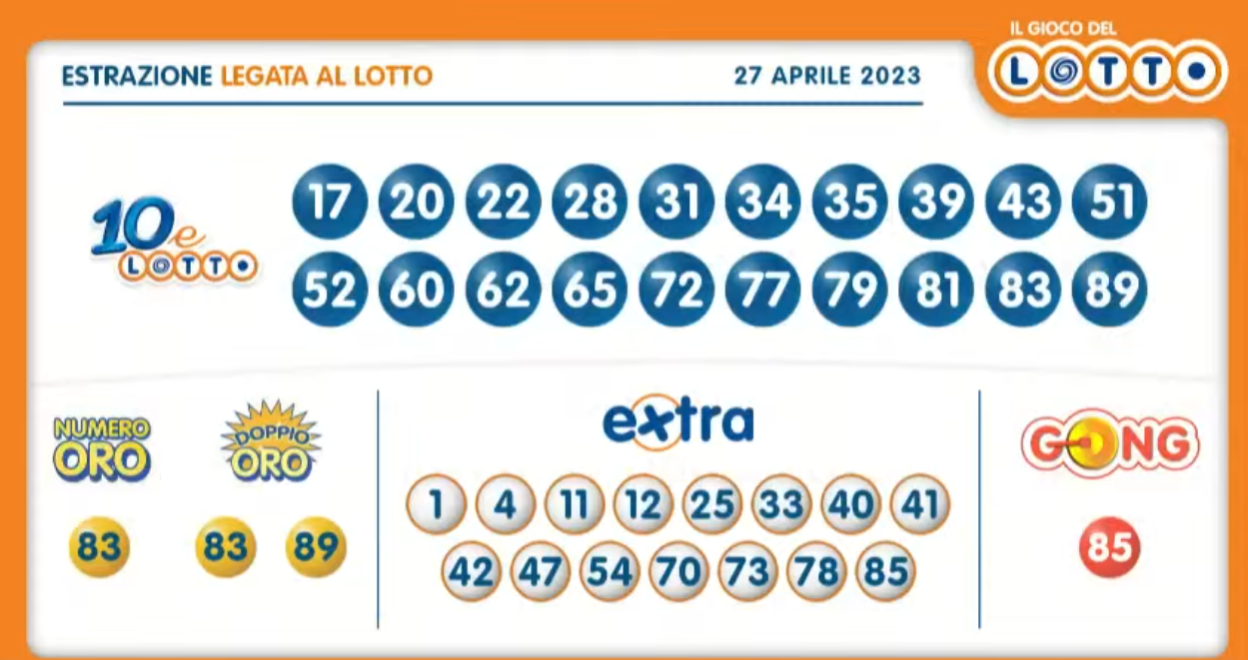 - 10ELOTTO: estrazioni del 27/04/2023