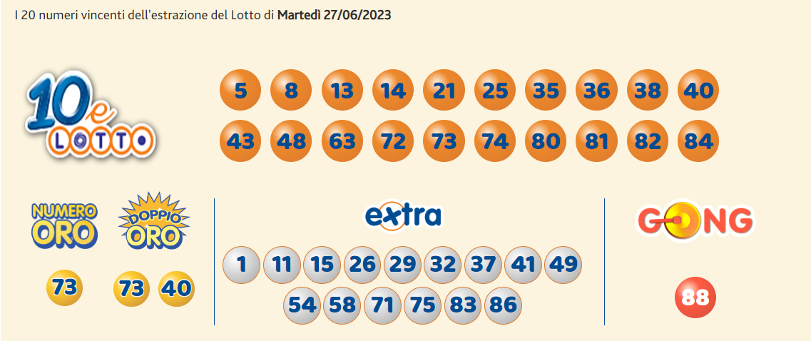 - Lotto 10eLotto Superenalotto del 27/06/2023